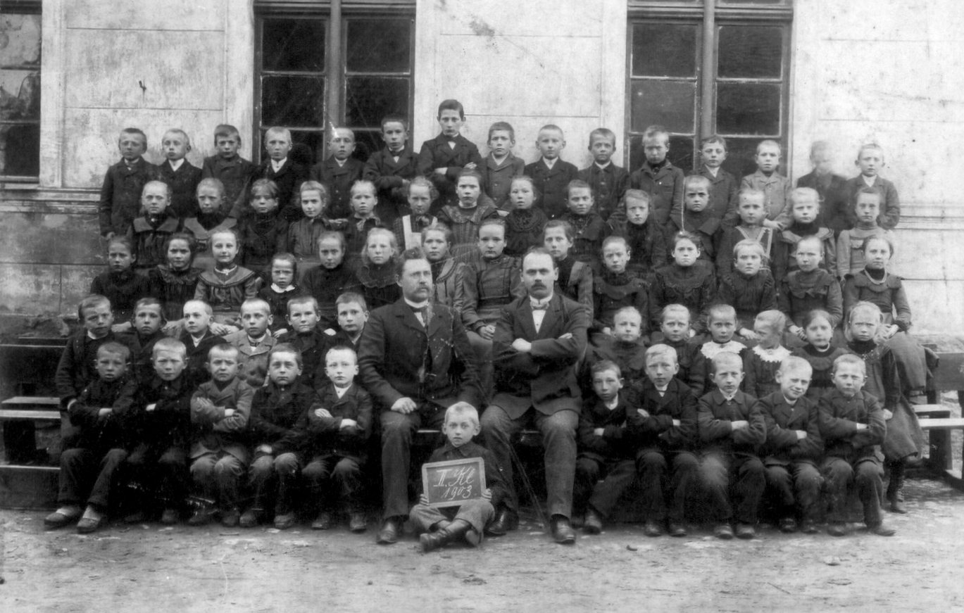 Die Schüler in Alt Warschow 1903 zur Verfügung gestellt von Eckhard Ladwig, dessen Großmutter Anna Maria Wilhelmine Hildebrandt hier geboren wurde – das zweite Mädchen von links in der dritten Reihe unten.